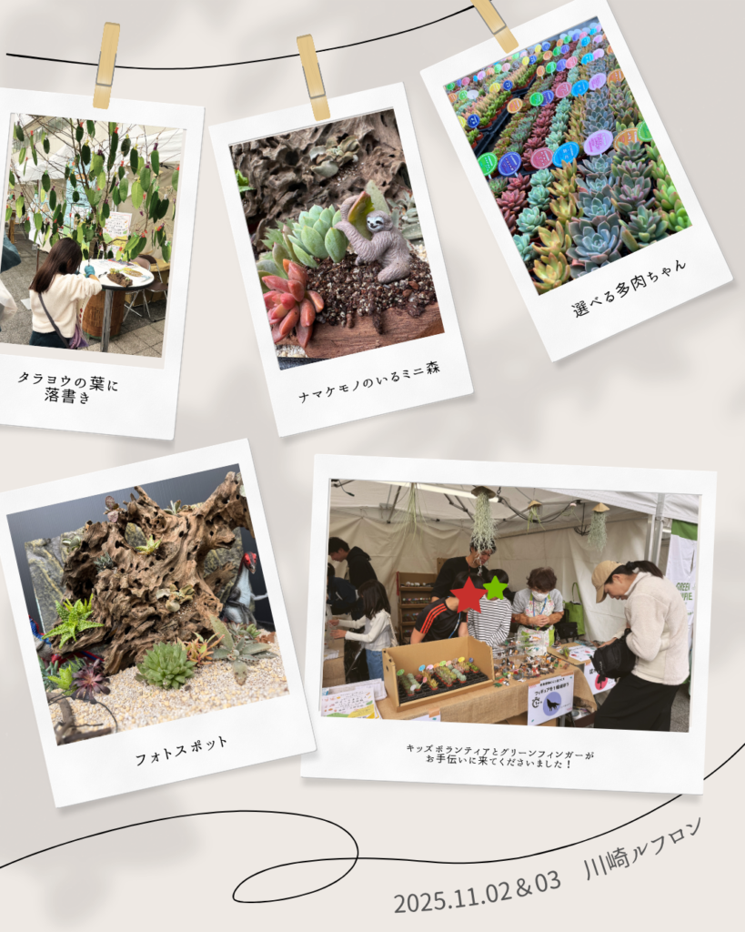 特殊な土を使い、好きな多肉植物+好きな動物フィギュアを選び、「多肉植物のミニ森づくり」にチャレンジ!皆さん思い思いの作品を作ってくださいました。