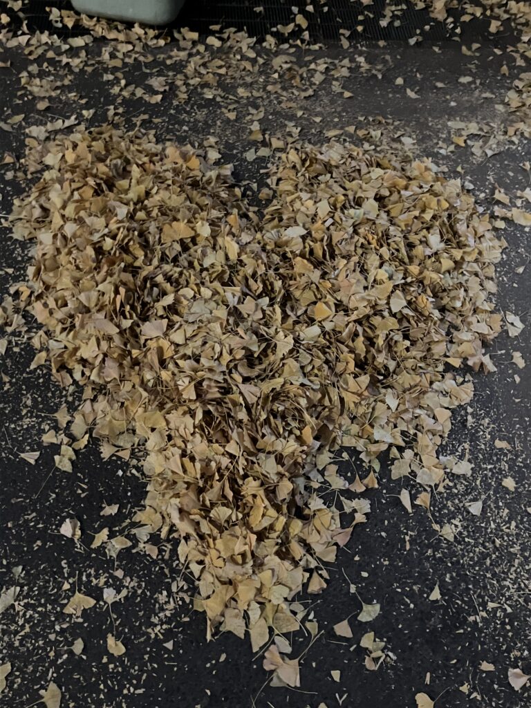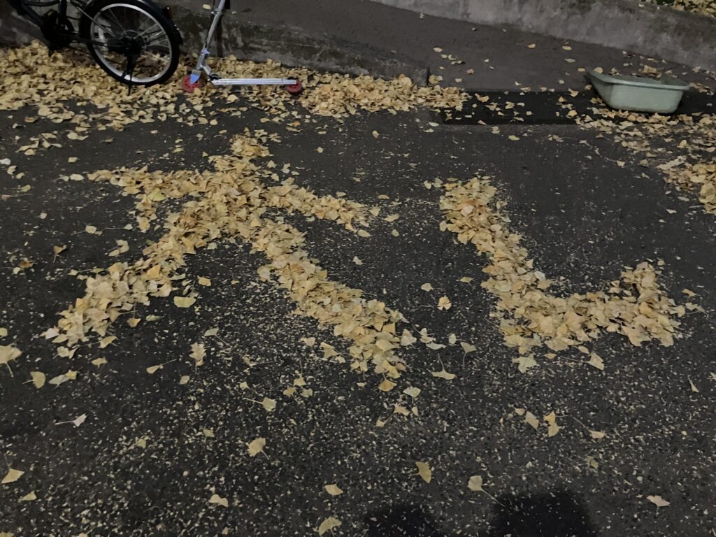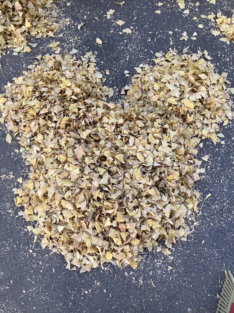 落ち葉清掃しながらせっせとなにかしているな~と思っていたら、たくさんの落ち葉アートをつくってました!可愛い!!