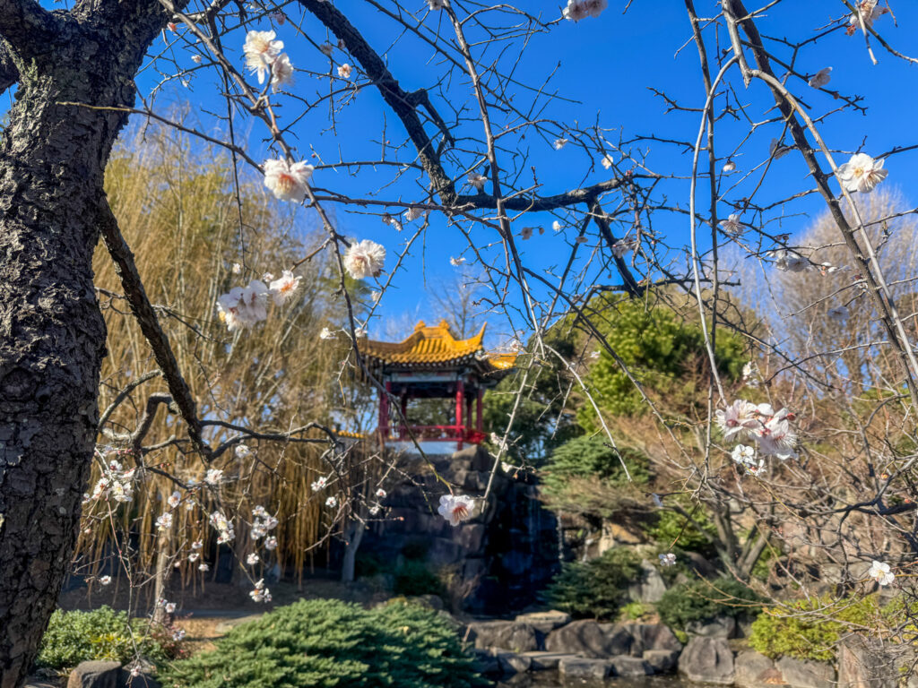 【開花情報】R8.1月28日瀋秀園の梅 2026/01/28 お知らせ大師日記開花情報園内の見頃情報瀋秀園 昨年は1月29日で枝垂れ梅3輪開花でしたので、やはり今年の開花は早いですね。 身体は寒く感じるのですが…。風邪をひかないように、防寒対策しっかりめでご来園ください!