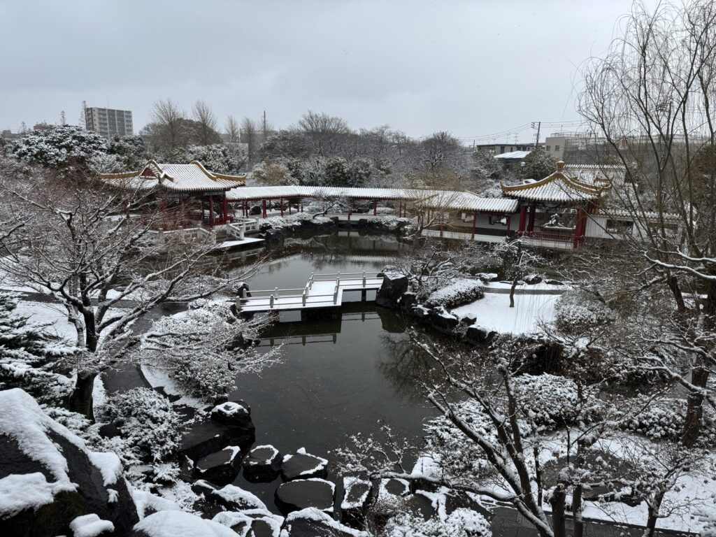 瀋秀園でも珍しい雪景色を楽しむことができます!