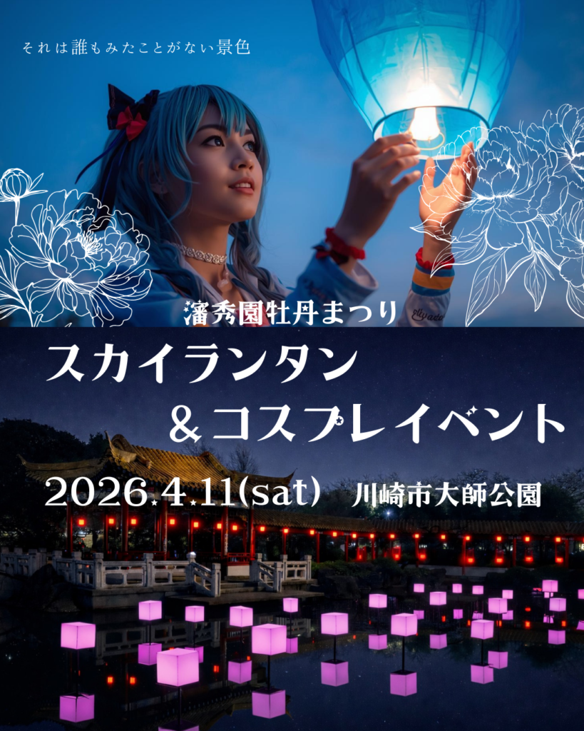 川崎市大師公園 初のイベント【ランタンナイト&コスプレイベント~瀋秀園牡丹まつり~】を開催します。